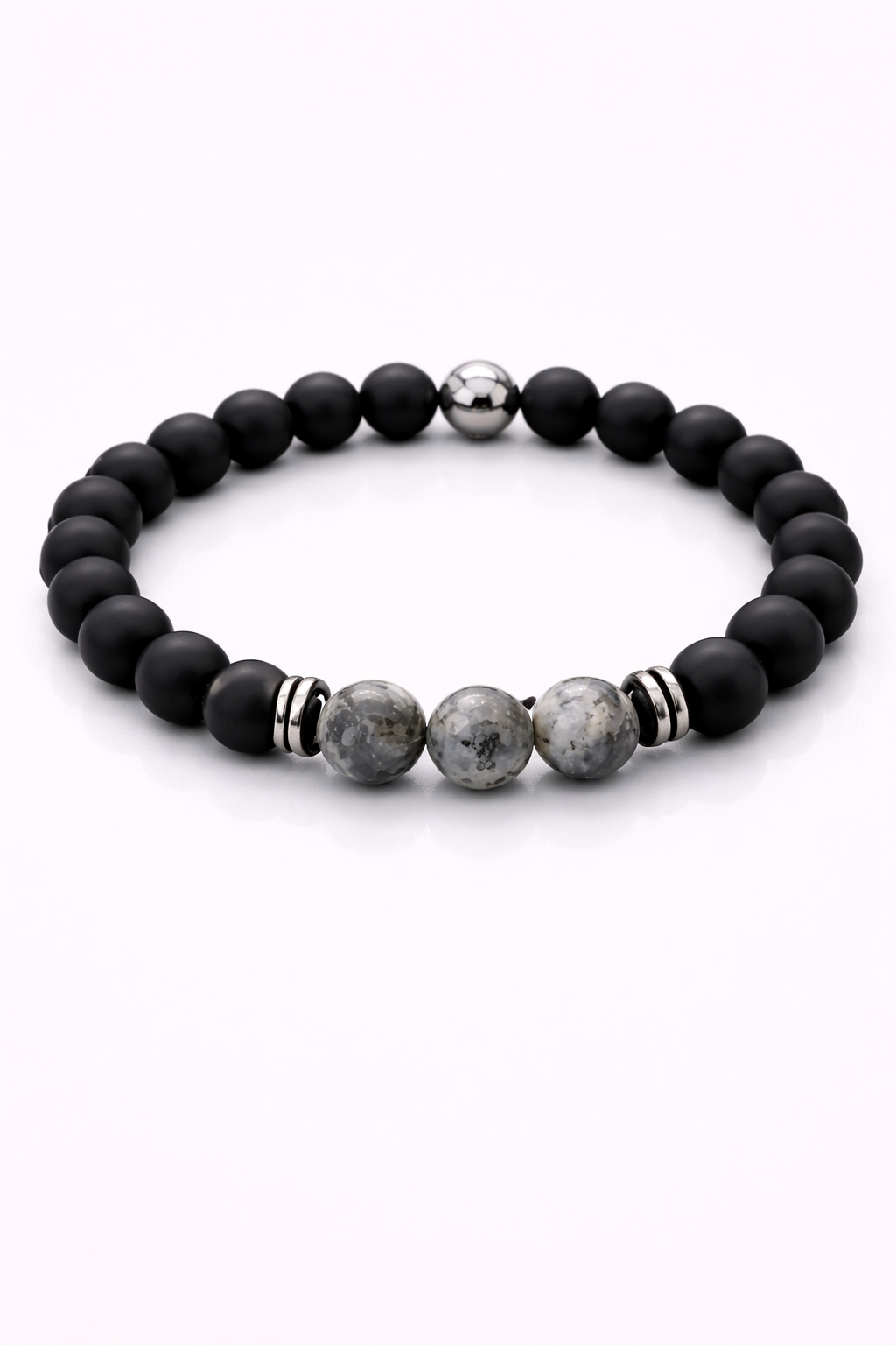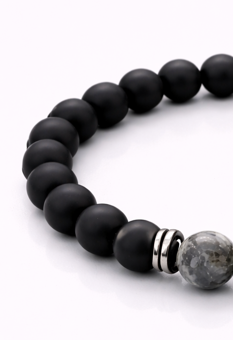 Bransoletka z naturalnych minerałów – obsydian śnieżny, lawa wulkaniczna & hematyt Stylowa bransoletka wykonana z połączenia naturalnego obsydianu śnieżnego o charakterystycznym, kontrastowym wzorze, matowej lawy wulkanicznej oraz eleganckich przekładek z hematytu. Zestawienie tych minerałów nadaje biżuterii surowy, a jednocześnie nowoczesny charakter. Bransoletka nawleczona na elastyczną, wytrzymałą gumkę — wygodna w codziennym noszeniu. Idealna zarówno dla kobiety, jak i mężczyzny. Zapraszamy do składania zamówień poprzez