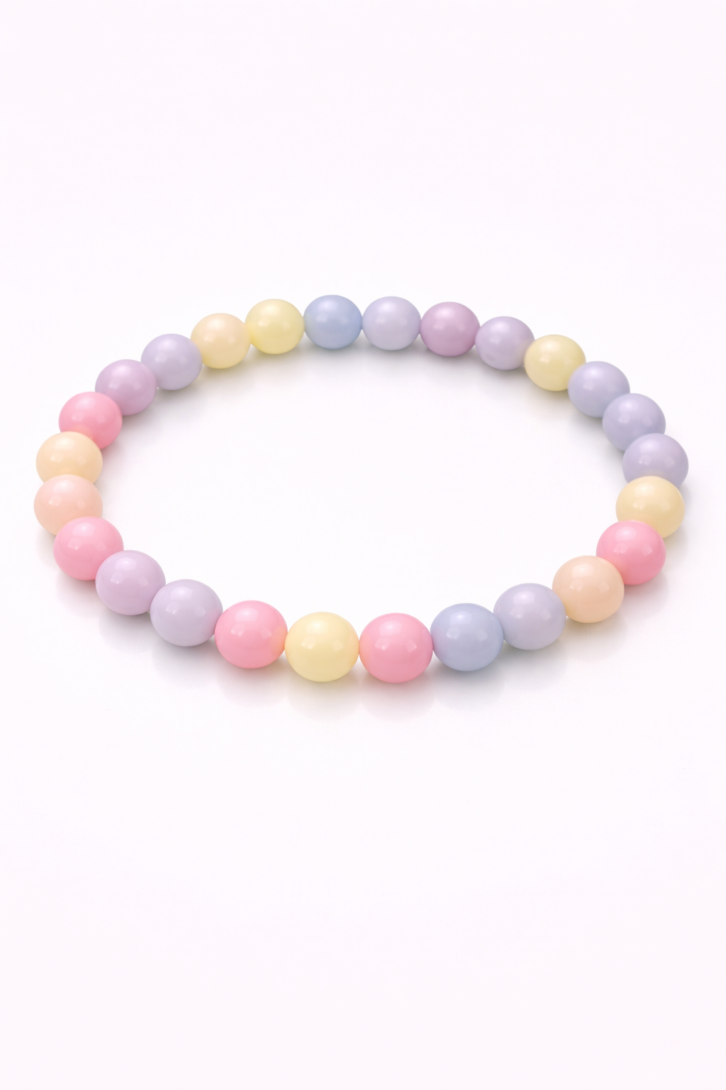 Bransoletka z naturalnego minerału – morganit Subtelna i elegancka bransoletka wykonana z polerowanych kamieni morganitu o delikatnych, pastelowych odcieniach różu, błękitu i kremowej żółci. Naturalna kolorystyka nadaje biżuterii lekkości i harmonii. Bransoletka nawleczona na elastyczną, wytrzymałą gumkę — komfortowa w codziennym noszeniu. Idealna jako prezent zarówno dla kobiety, jak i mężczyzny.