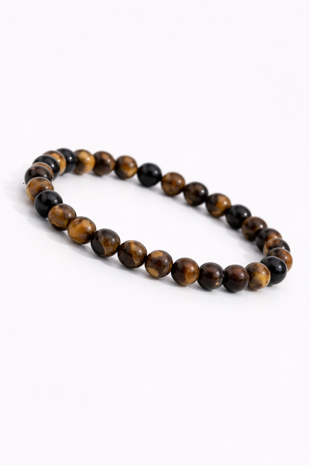 Elegancka, ręcznie wykonana bransoletka z naturalnego kamienia Tiger Eye (Tygrysie Oko), znanego ze swoich wyjątkowych, złoto-brązowych refleksów oraz symboliki siły, odwagi i ochrony. Każdy koralik został starannie dobrany, aby zachować naturalne przejścia kolorów i unikalny charakter kamienia.